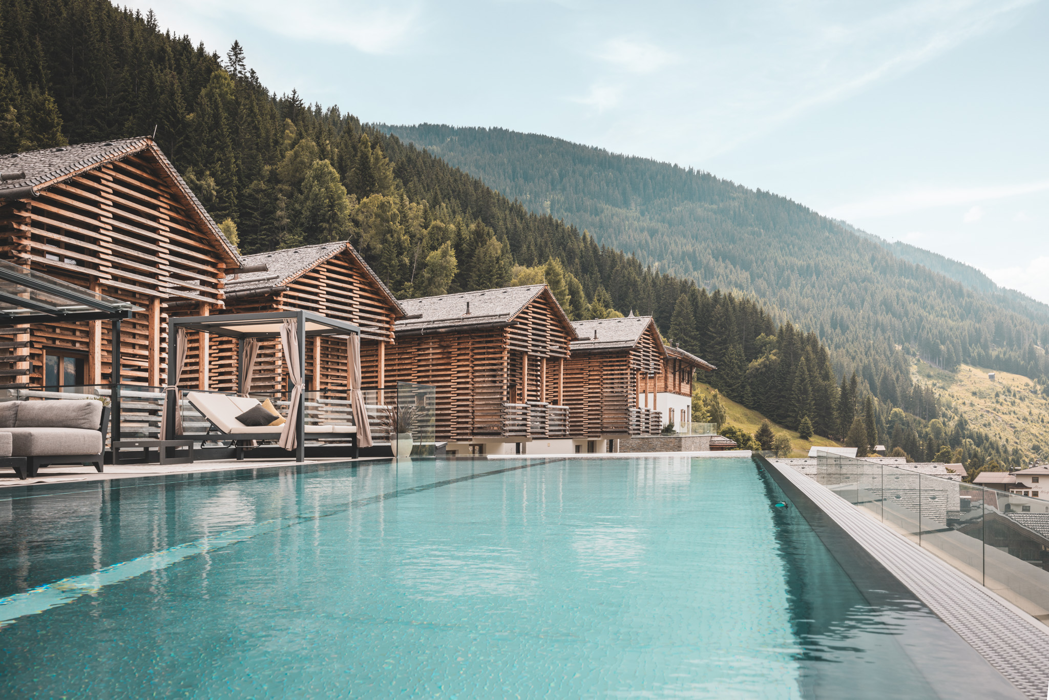 Zwölf Chalets mit Sauna, Infinity Pool und Fitness in steiler Hanglage. So pur, so echt, so einladend wie das Tal und seine Menschen. Grad so, wie's immer war. Willkommen im Glück.